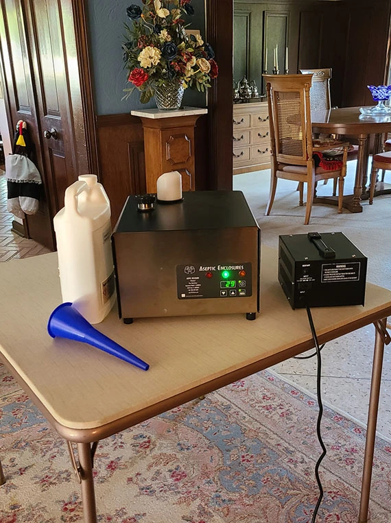 Our Specially formulated Neutralizing Solution is Hydrogen Peroxide Based. When used properly it is very safe and exceptionally effective against a wide range of Viruses, Bacteria, Molds and Fungus. The “food grade” solution is tested to be compatible with all surfaces, fabrics and electronics. It will not leave a residue.